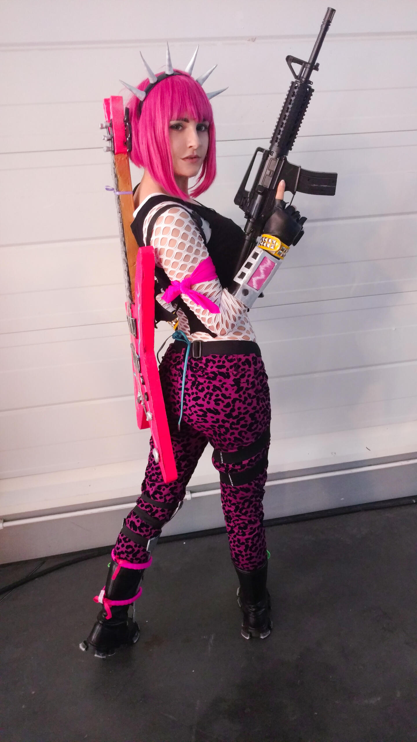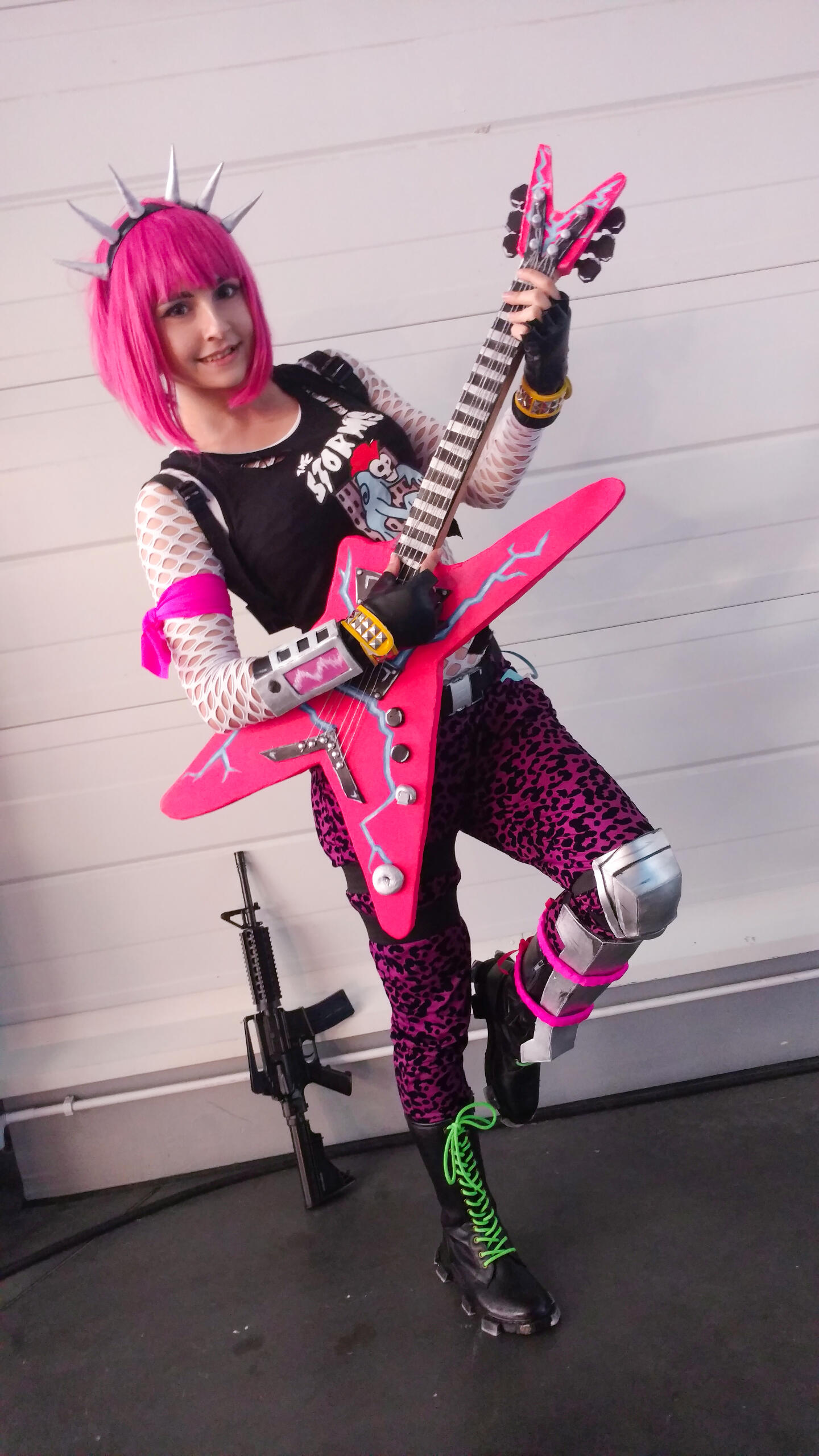 Creation of Power Chord cosplay from Fortnite, including the iconic guitar prop.